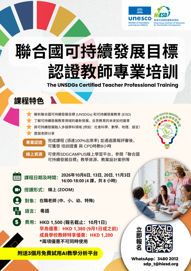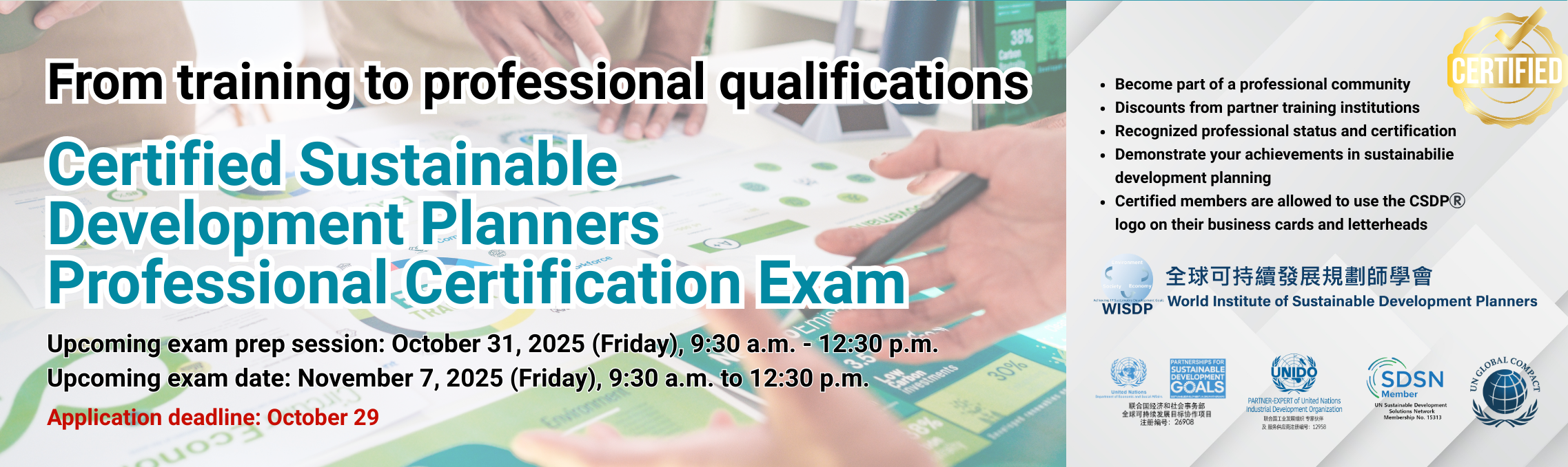 学院鼓励及支持可持续发展规划专业人士进行进修及认证,通过提供线上、线下课程以及构建可持续发展交流平台,在香港、大湾区、国际层面建立可持续发展的终身学习体系,推动教科文组织的2030年可持续发展教育计划,携手各界迈向可持续发展。