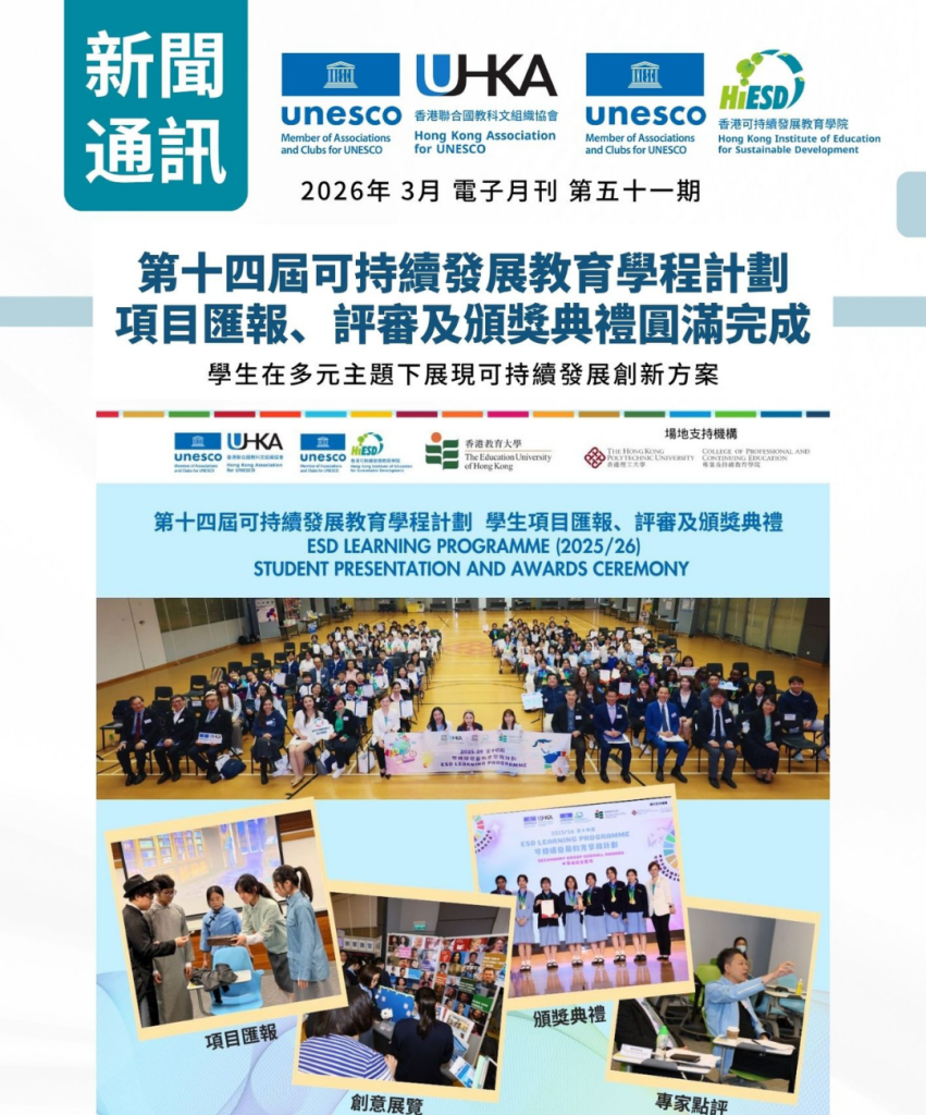 香港可持续发展教育学院(学院,HiESD)是跨学科研究型创新应用学院,自2003年起以推进联合国可持续发展教育(ESD)为主旨,开展推动前瞻性研究、制定准则、优质教育。学院围绕推进联合国《2030可持续发展议程》,是联合国经济和社会事务部(UNDESA)全球可持续发展目标协作项目机构(注册编号:26908)及联合国工业发展组织(UNIDO)专家伙伴及服务供应机构(注册编号:12958),联合国可持续发展解决方案网络(UNSDSN)成员机构。学院是联合国教科文组织协会世界联合会成员机构、香港联合国教科文组织协会的创办发起机构及秘书处、联合国 75 周年对话地区主办机构、 联合国第 29 届气候变化大会(COP29)中国角主题边会联合主办机构。