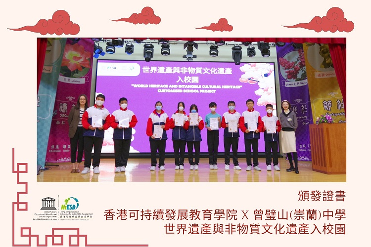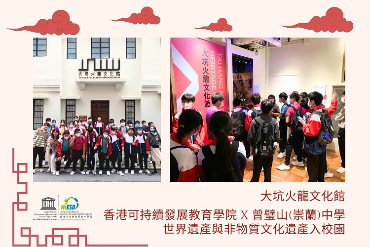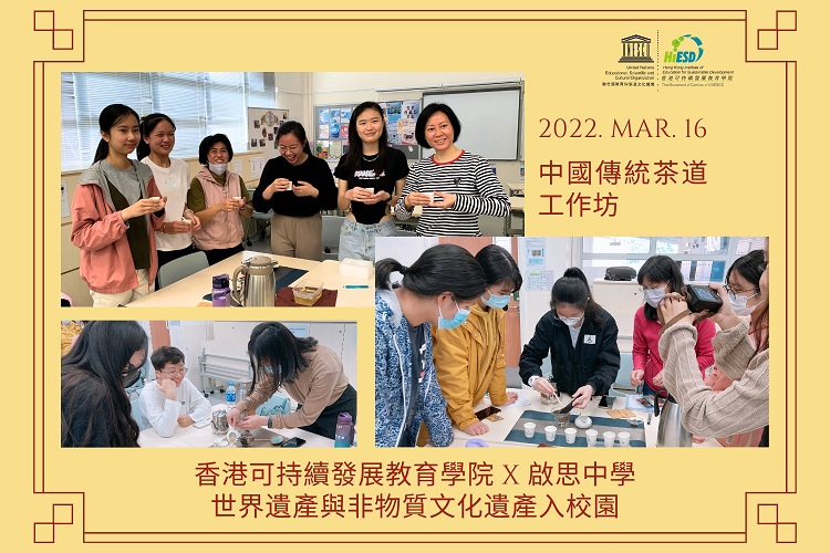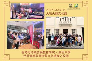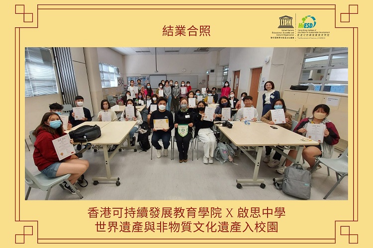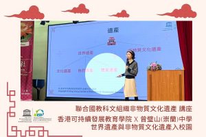 聯合國教科文組織 世界遺產及非物質文化遺產香港教師培訓 分享學員:黎慧儀老師 – 新界婦孺福利會基督教銘恩小學; 劉致光老師 – 皇仁舊生會中學; 丘鎮華老師 – 台山商會中學
