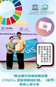 完成課程的導師通過評審可以參與香港可持續發展教育學院的「認可SDGs校園行動夥伴計劃」