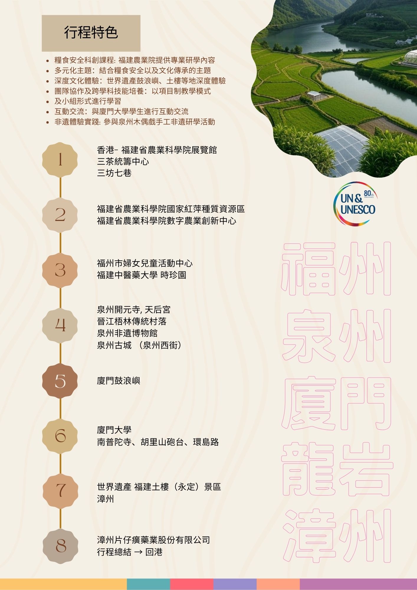 • 糧食安全科創課程: 福建農業院提供專業研學內容